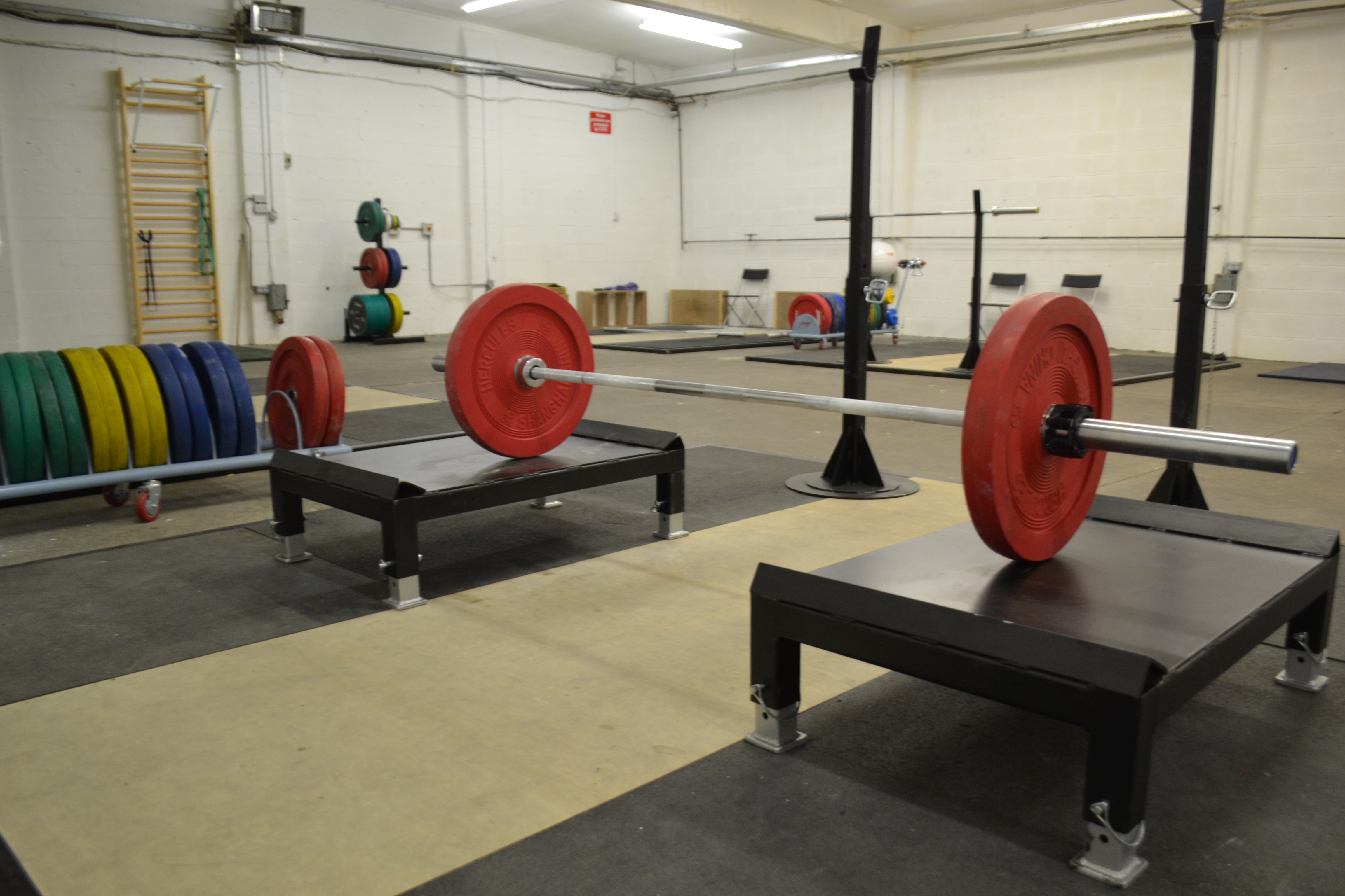 We have had heavy duty jerk boxes, pulling blocks and squat stands custom made allowing for a variety of exercises to assist in learning and developing the lifts. We also have wall bars and warm up space for bodyweight conditioning, stretching and mobility drills.